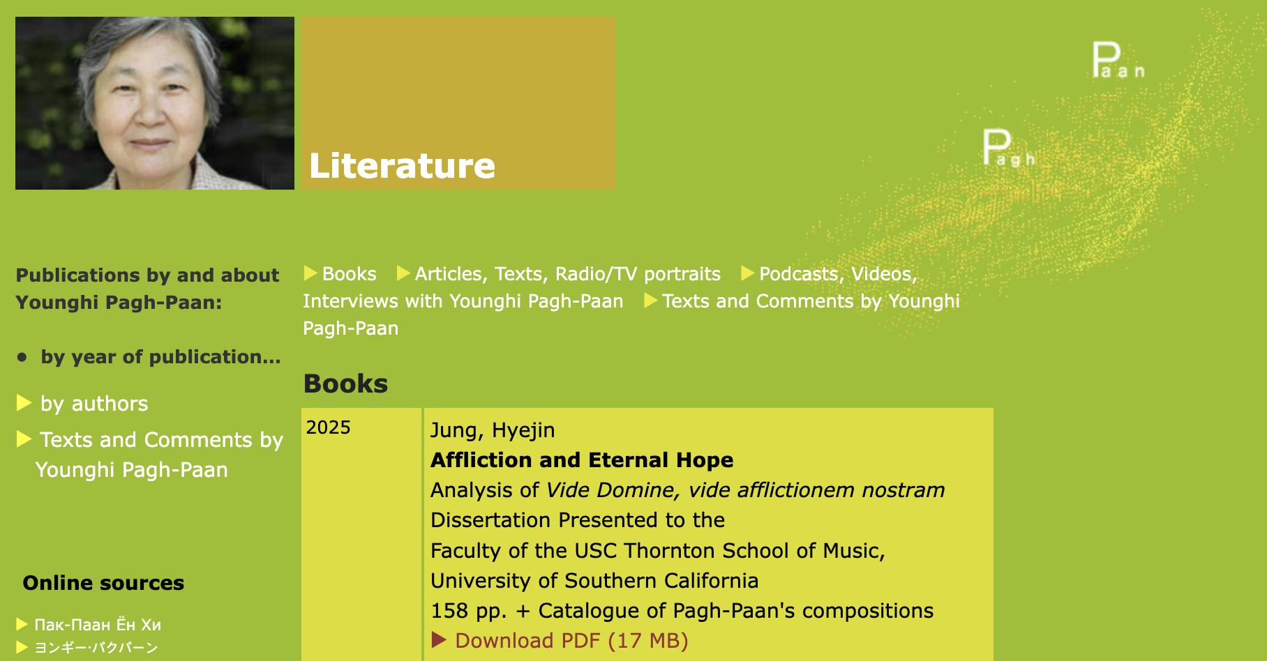 Jung, Hyejin. Affliction and Eternal Hope: Analysis of Vide Domine, vide afflictionem nostram (2007) by Younghi Pagh-Paan.